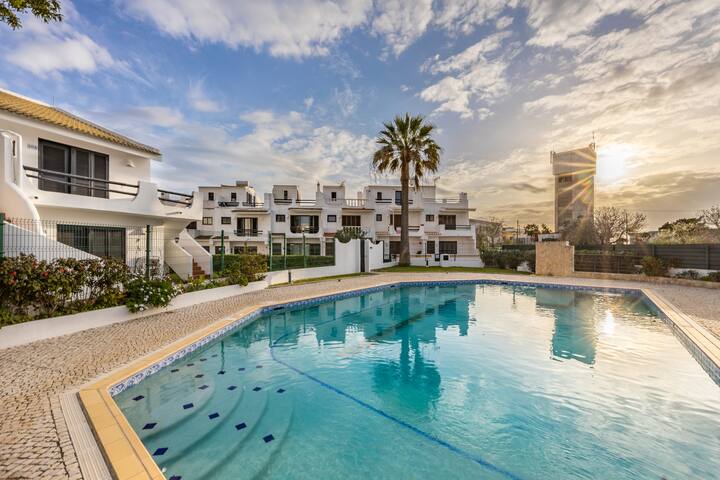 Pis renovat a la platja D. Ana amb aire condicionat i piscina
