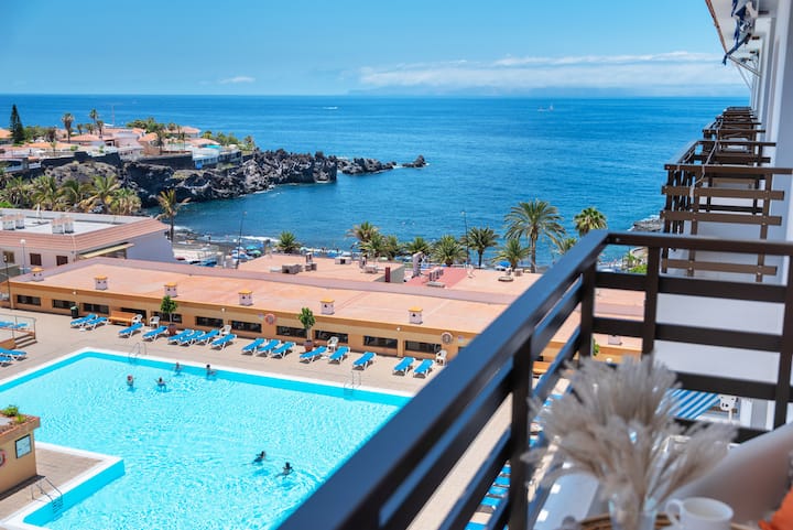 Pis modern d'1 habitació amb piscina i vistes al mar - A prop de la platja
