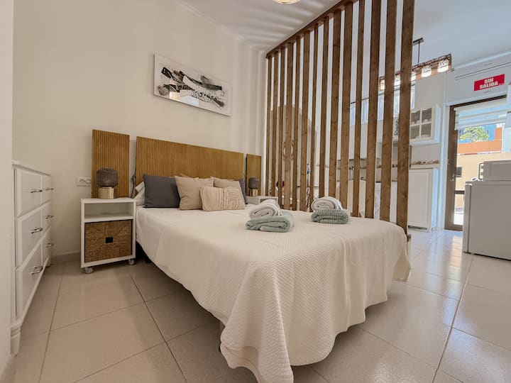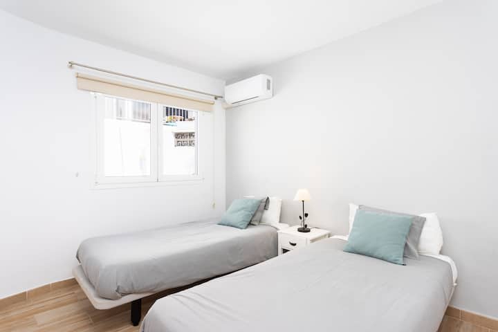 Pis a peu de platja amb vistes increïbles, dos aire condicionat, aparcament