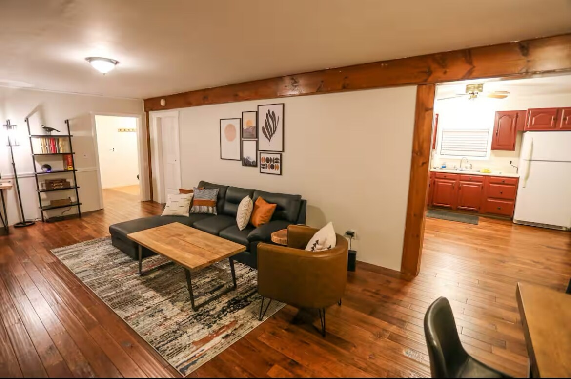 L'objectiu és que puguis relaxar-te, recarregar-te, gaudir i respirar. Oferim una banyera d'HIDROMASSATGE privada per a 3 persones, dutxa càlida a l'aire lliure de temporada i xemeneia , SAUNA d'infrarojos, banyera independent de 72"per gaudir de l'experiència DEFINITIVA de spa. Llit «king» amb una base de llit ajustable i vibrant. L'acollidor allotjament de 600 metres quadrats està equipat amb tot el que el teu cor pugui desitjar. Disseny artístic a cada cantonada. Els columpis bous al porxo privat. Arribem en un terreny de conservatori de 13 aire condicionat amb rutes per caminar i fer senderisme al pati del darrere.