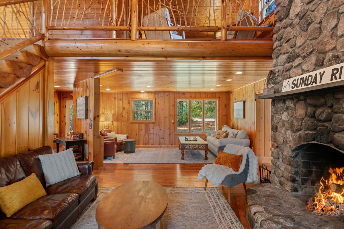 Escapa't a una cabana de luxe amb parets de vidre i dissenyada per a la intimitat, situada a la vora de l'aigua en més de 3 hectàrees aïllades al llarg del riu Crooked, a Naples, Maine. El riu envolta l'espai i t'ofereix total privacitat, una platja de sorra pròpia, un moll amb accés directe al llac Sebago i un parc estatal a pocs minuts. Relaxa't a la banyera d'hidromassatge oberta tot l'any, a la dutxa exterior, a les hamaques o al costat de la llar de foc transparent. Bany de luxe amb terra radiant, dutxa enorme amb finestra panoràmica. Aire condicionat, s'accepten animals de companyia. És un refugi perfecte i tranquil: vine a carregar les piles!