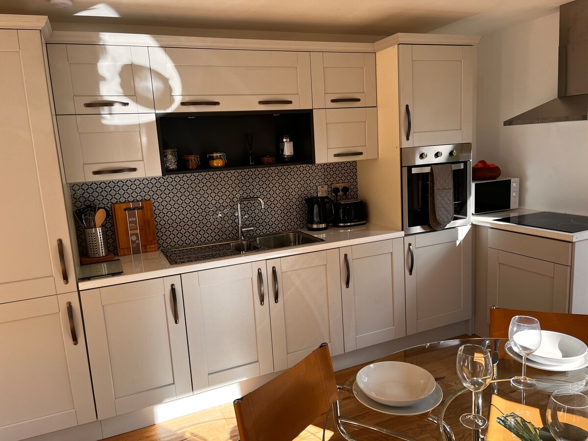 Gran, modern, còmode, tranquil, ple de llum, amb un petit pati tancat/espai de jardí amb menjador a l'aire lliure, vistes panoràmiques a la muntanya i al mar. El millor d'ambdós mons és a només 5 minuts del pintoresc poble d'Enniskerry, amb els seus pubs i cafeteries i els jardins, la casa, la cascada, la casa i la casa, la cascada. A 5 minuts dels teixidors d'Avoca a Kilmacanogue. A 2 minuts de djouce per fer passejades pel bosc, senders per a bicicletes, etc. A 10 minuts de la ciutat de Bray. A 30 minuts de la ciutat de Dublín. A 45 minuts de l'aeroport de Dublín.
