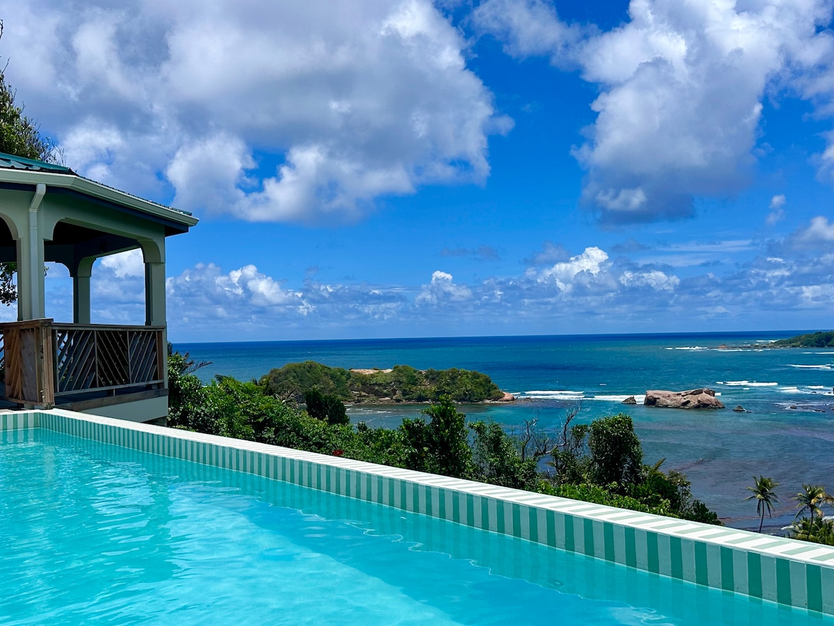 Aquesta impressionant vil·la privada de luxe es troba en un entorn selvàtic exòtic. La vil·la es troba a la platja de Calibishie, al costat de la fàbrica de roques vermelles i xocolata. Cada dormitori «king size» s'obre a una piscina privada des dels seus dormitoris amb bany privat. Els dormitoris tenen aire condicionat. La piscina privada amb un pati exterior cobert de gran mida ofereix vistes a l'oceà Carib. La vil·la té una cuina equipada, una sala d'estar amb televisor i wifi.