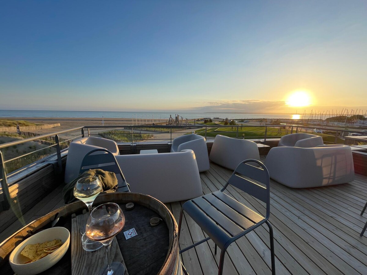 Benvingut a aquest bonic apartament de 40 m2 situat en un edifici tranquil de 3 unitats. Increïble panoràmica de l'oceà i la platja de Saint Brévin les Pins. Relaxació assegurada en una gran terrassa per als teus àpats i magnífiques postes de sol. A prop del centre de la ciutat (botigues/mercat a 5 min a peu) Des de l'allotjament, accés directe a la platja i als 40 quilòmetres de carrils bici del Vélocéan. Dunes, parcs, pinedes. Llocs per fer surf d'estel, surf de vela, wingfoil i sandià.