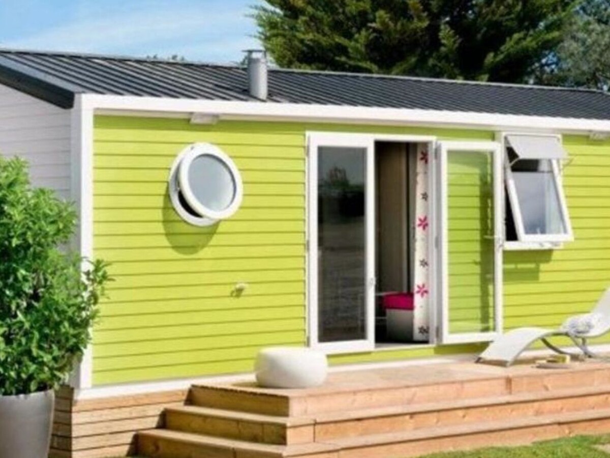 T'agradaria passar unes vacances a prop de la natura i a 1 km del mar? La nostra casa mòbil t'està esperant. Càmping 4☆ les Bois de Bayadène. Nou 40m2, 3 dormitoris, 1 sala d'estar, 1 cuina equipada, 1 bany, 1 vàter separat. Els hostes poden gaudir d'espai addicional gràcies a la terrassa coberta i tancada amb mobles de jardí. 1 planxa de gas. Zona aquàtica climatitzada i supervisada (int/ext), accessible a través de la compra de passis de diversió des del càmping. Club infantil, entreteniment per a tothom.