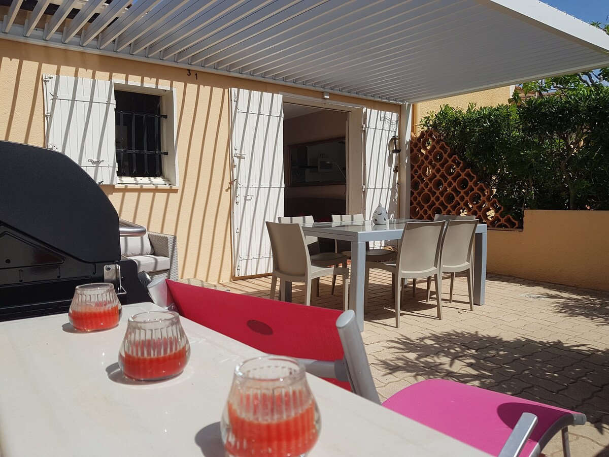 RDC de villa de 40 M2 totalement indépendant avec jardin et barbecue. Aucun vis-à-vis avec les propriétaires. Quartier calme et résidentiel à 7 minutes à pied d'une immense plage de sable et à 10 min à pied du centre ville de Canet Plage. - Salon avec baie vitrée et Canapé-lit 2 couchages (TV avec NetFlix et WiFi inclus) -Chambre cabine lit double -Cuisine entièrement équipée -SdB avec douche et lave-linge -WC séparé -Jardin avec Tables, Transats, Barbecue et Parking Draps et serviettes fournis