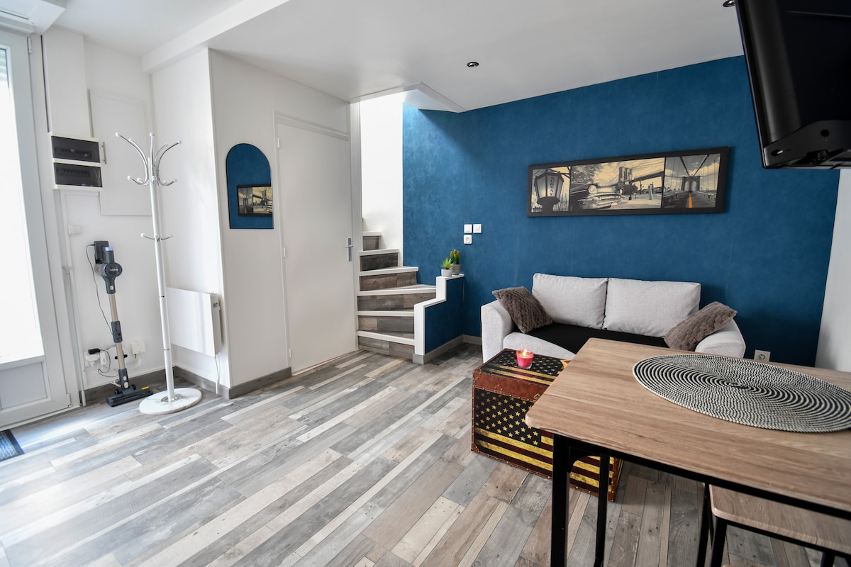 Et donem la benvinguda al nostre loft, una petita casa en dos nivells situada a la part inferior d'un pati tranquil a prop de tots els serveis, a cinc minuts a peu del centre de la ciutat, a 1,2 km de l'estació de tren, a 20 km de Lac du Der i al golf de 18 forats. L'allotjament ofereix una habitació individual i un sofà llit. Cuina equipada, escriptori, wifi, petita zona exterior amb taula, aparcament gratuït a prop. S'admeten animals de companyia. Arribada i sortida autònomes. Es pot fer una inspecció abans de la sortida. Tinc moltes ganes d'allotjar-te
