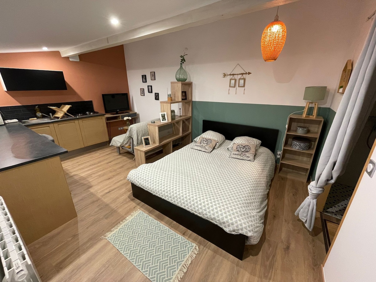 estudi per a 2 o 3 persones de 23 m2, a més d'un entresol a Saint Galmier . Pati tancat. calefacció reversible amb aire condicionat de televisió, cuina totalment equipada, Senséo , bullidor ,sofà llit en 140 a la planta baixa. 1 llit al entresol 160×200. Llençols inclosos. Bany amb dutxa , assecador de tovalloles amb ventilador 1 tocador, vàter i tovalloles A terra, un entresòl amb un llit de 160x200. Aire condicionat No s'admeten animals de companyia. No es permet fumar. Prohibit la nit. Abans de fer la reserva, posa't en contacte amb mi. Gràcies.