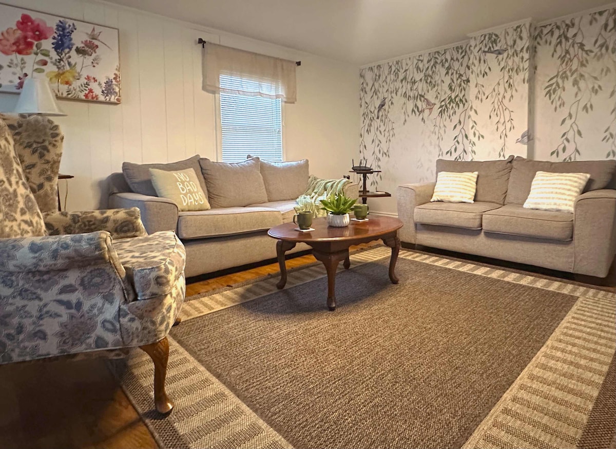 El mobiliari és victorià, modern i decora bellament els sostres alts, les finestres altes i la preciosa motllura de fusta de tota la casa. Després de gaudir de l'aire lliure, acurruca't davant d'un foc torrat i mira el teu televisor intel·ligent Roku de 55"(assegura't de portar la informació d'inici de sessió per a les teves aplicacions de streaming preferides!). El victorià no és adequat per a nens. Per a estades per a famílies, dona un cop d'ull als nostres altres allotjaments d'Airbnb: «Impressionant bungalou de herreria» i la «Exquisita caseta de fusta».