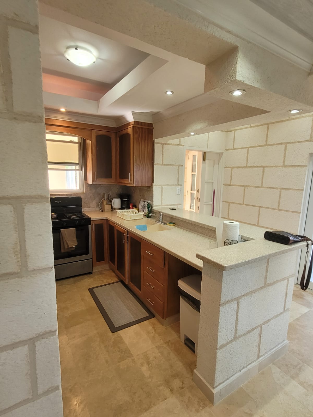 El TopFloor Main House "SoupBowl"Apartment és la nostra habitació més espaiosa: la unitat de la cantonada amb vistes al mar. Relaxa't a la hamaca o a la zona d'estar personal a l'aire lliure amb divisor d'espai de fusta. Habitació amb aire condicionat, llit «king size» i mosquitera. Bany complet amb banyera d'hidromassatge i dutxa independent i vàter. Cuina completa, nevera/congelador, cafetera, bullidor elèctric i estris de cuina. Esmorzar inclòs per a 1 o 2 persones. Si no està disponible, tenim altres anuncis d'Airbnb.