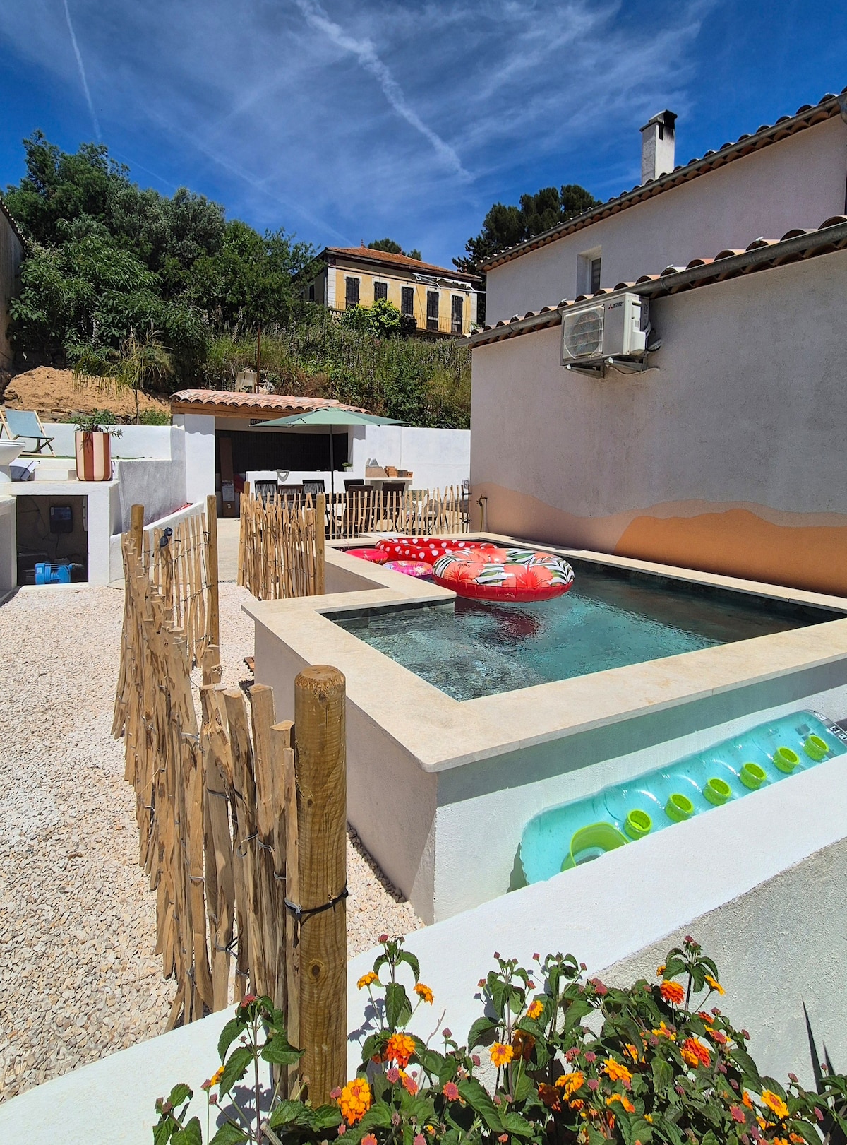 Maison écologique avec terrasse, 5 personnes ;possibilité couchage supplémentaire; Piscine privée 4,2mx4,15m du 15 juin au 15 septembre sauf les dimanches ; Stationnement 2 voitures dans cour fermée; Parfait pour famille ou amis dans un environnement résidentiel calme. Accès à pied aux plages de Mar-vivo (5mn) et Sablettes (10mn). Tous commerces à proximité à pied; A 5mn à pied des animations des Sablettes : restaurants, parc d’attraction enfants, marché nocturne…et bateau pour Toulon