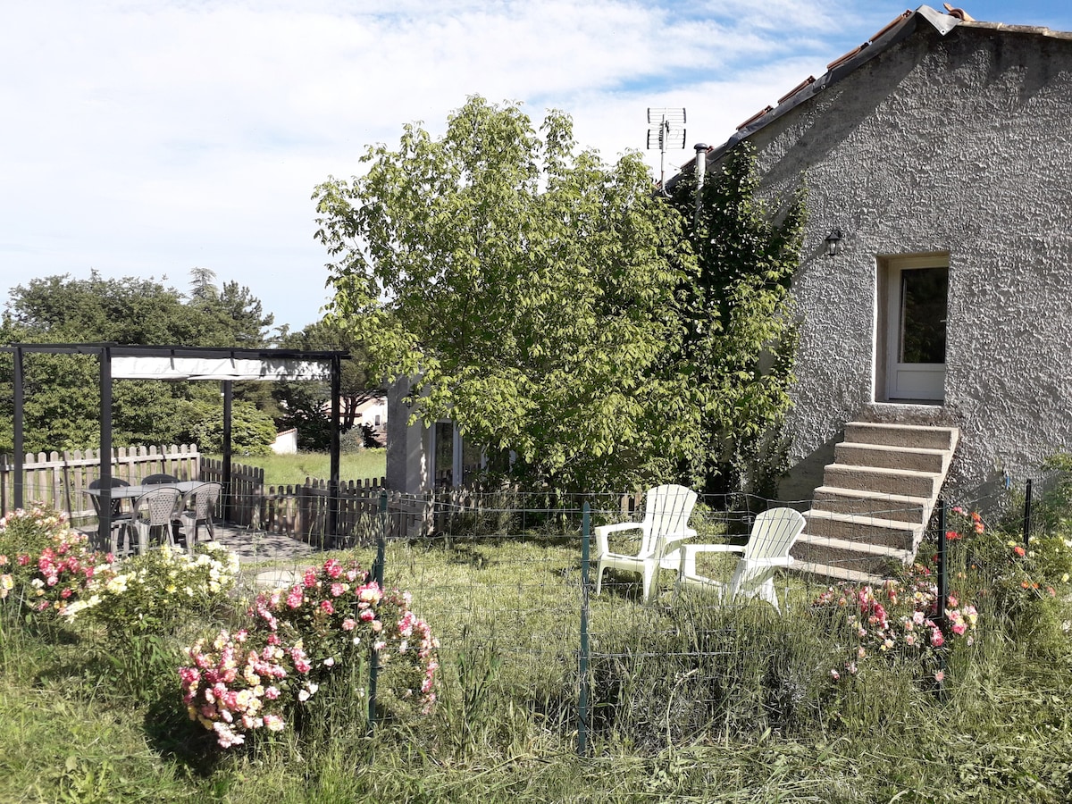 A 10 minuts de les gorges de l'Ardèche i el Tricastin, en una zona tranquil·la al camp, t'ofereixo un estudi independent a la planta baixa. Hi ha una cuina petita amb estris, vitroceràmica doble, pica i nevera amb congelador petit Un vàter i una zona de dutxa L'accés és independent amb una terrassa privada coberta Estem aïllats al camp, ho especifico. L'accés a la casa està pavimentat, però ves amb compte, no estem a la ciutat, però és tranquil. Accés independent