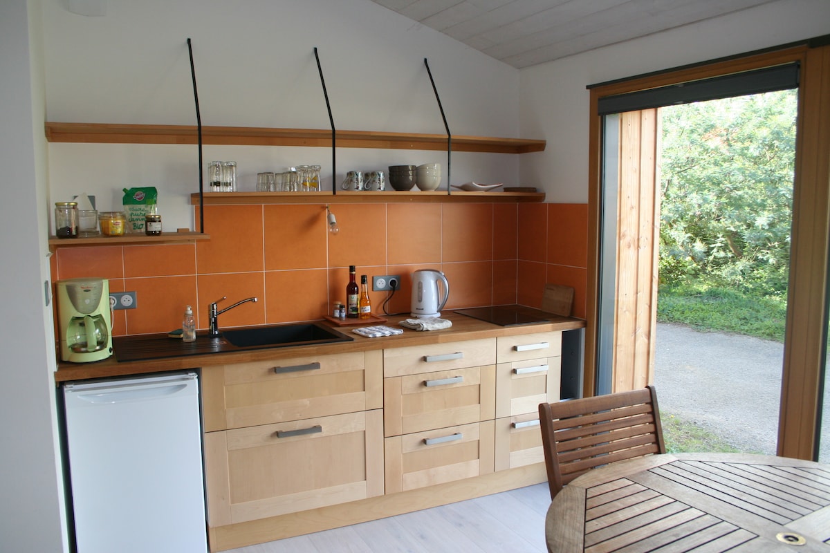 Dins d'una granja de verdures ecològiques diverses. El lloc té capacitat per a 4 persones (incloent-hi 2 a l'entresol). Dutxa privada, lavabo i cuina petita. La roba de llit i les tovalloles estan incloses en el preu. Bicicletes disponibles, de forma gratuïta. Internet: fibra L'arribada és a partir de les 16:00, excepte els divendres (17:00).