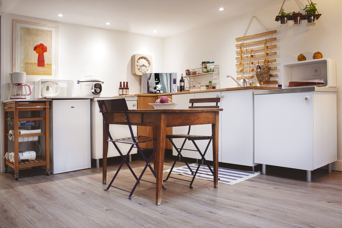 Com una casa petita, en un poble proper a Grenoble, un estudi independent completament equipat per gaudir d'una estona de relax. Pots gaudir d'una copa o dels teus àpats a la terrassa . Hi ha petites botigues i pizzes per emportar a prop. Esmorzar inclòs, amb cafè i te disponibles, melmelada i mel. La pastisseria del poble està a 20 metres per prendre el pa fresc del matí a partir de les 6.30h.