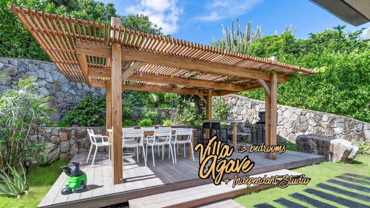 Relaxa't en aquest allotjament tranquil i elegant, amb un jacuzzi privat i unes vistes impressionants del mar Carib, el costat neerlandès de l'illa, Terre-Basse i Anguila. Gaudeix d'unes postes de sol impressionants des de la teva terrassa. Un camí de vianants en bon estat et permet arribar a la idíl·lica platja de Happy Bay i a la popular platja de Friar's Bay en només 5 minuts. Amb una ubicació ideal a pocs minuts de Grand Case, el punt culinari de l'illa, així com de Marigot i Orient Bay.