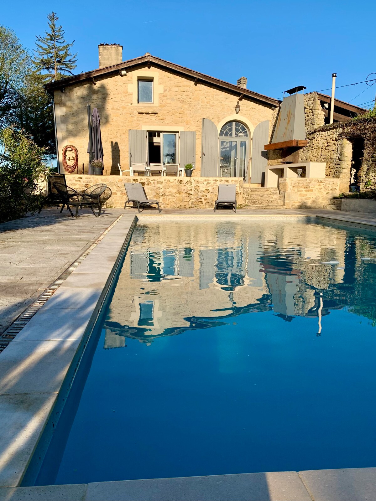 La nostra casa és un preciós edifici de pedra del segle XVIII, completament reformat. Tranquil i espaiós, amb una gran parcel·la amb piscina (climatitzada de març a novembre) i una vista excepcional del camp que l'envolta, també ofereix accés immediat al centre del poble. A pocs minuts a peu hi ha botigues, bars, restaurants, botigues de comestibles, mercat i fins i tot cinema.