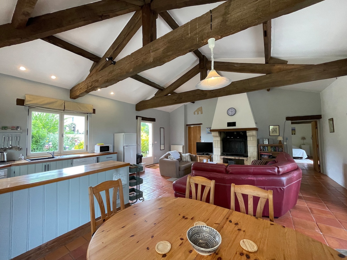 Et donem la benvinguda a la nostra encantadora casa de pedra situada al camp de Fossès-et-Baleyssac, envoltada de vinyes precioses. Amb 4 dormitoris, 3 banys i 3 lavabos, la nostra casa té capacitat per a 8-10 persones. També gaudeix de la nostra piscina, la casa de la piscina, la pista de bochas i l'ampli terreny tancat d'1 hectàrea que acull les nostres 2 cabres nanes, blanctte i Elvis. Vine i recarrega les piles i descobreix les meravelles de la regió!