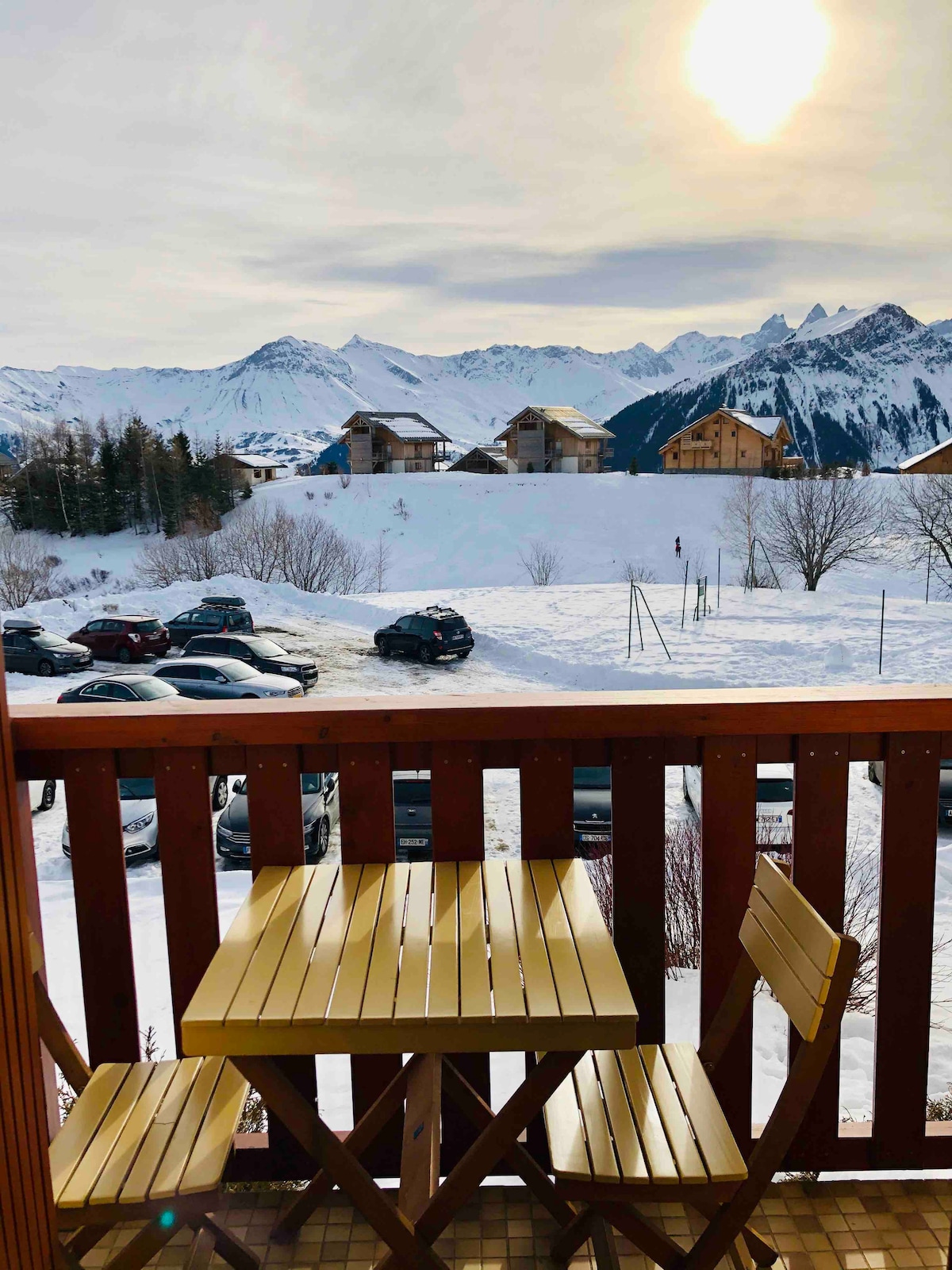 This modern Alpe D'Huez studio is perfect for couples or solo travelers who want to explore the charms of the old town while enjoying what the mountain has to offer. Find free convenient parking, free bedding and towels, and fast Internet for a hassle-free stay. Enjoy stunning views from your south-facing balcony overlooking the mountains and Ecrins National Park, plus you’ll be just a minute away from La Grande Sûre chairlift, and a short stroll to local shops, bars and restaurants.
