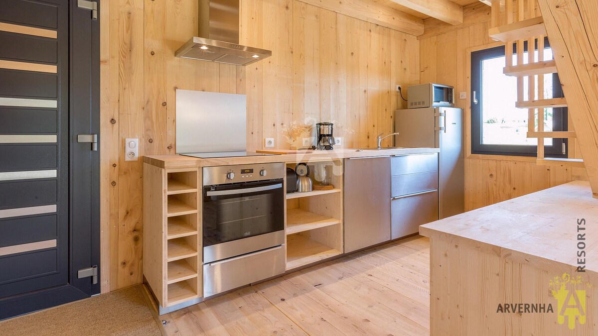 Le Delta bénéficie d'une cuisine aménagée ouverte sur un grand salon/salle à manger avec poêle à granules. Au rez-de-chaussée se trouve également une première chambre avec lit double, une salle de bain, un WC séparé et une buanderie. A l'étage se trouve la chambre mezzanine avec baignoire et lit double. Profitez du filet pour vous détendre et accéder aux 2 couchages insolites. L'accès au chalet se fait par une terrasse de 35m² avec SPA privatif et mobilier d'extérieur.
