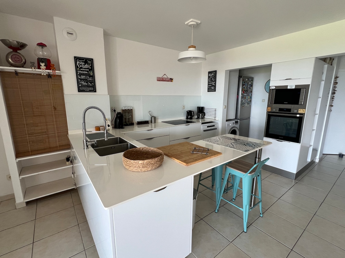 Pis de 69 m² a la 1a planta amb ascensor, situat a 10 minuts a peu del poble de Case Pilote. Vistes al mar, sense mosquits, agradable dia o nit. Barri molt tranquil. L'apartament conté: - Habitació 1 : 1 llit 160, aire condicionat, armari gran. - Habitació 2 : 1 llit 140, escriptori, armari gran, ventilador de sostre. - Sala d'estar: sofà, televisor, wifi. - Terrassa coberta de 31 m² amb vistes al mar - Cuina equipada: nevera, forn, rentadora, bugaderia,...) -SdB -WC - Aparcament.