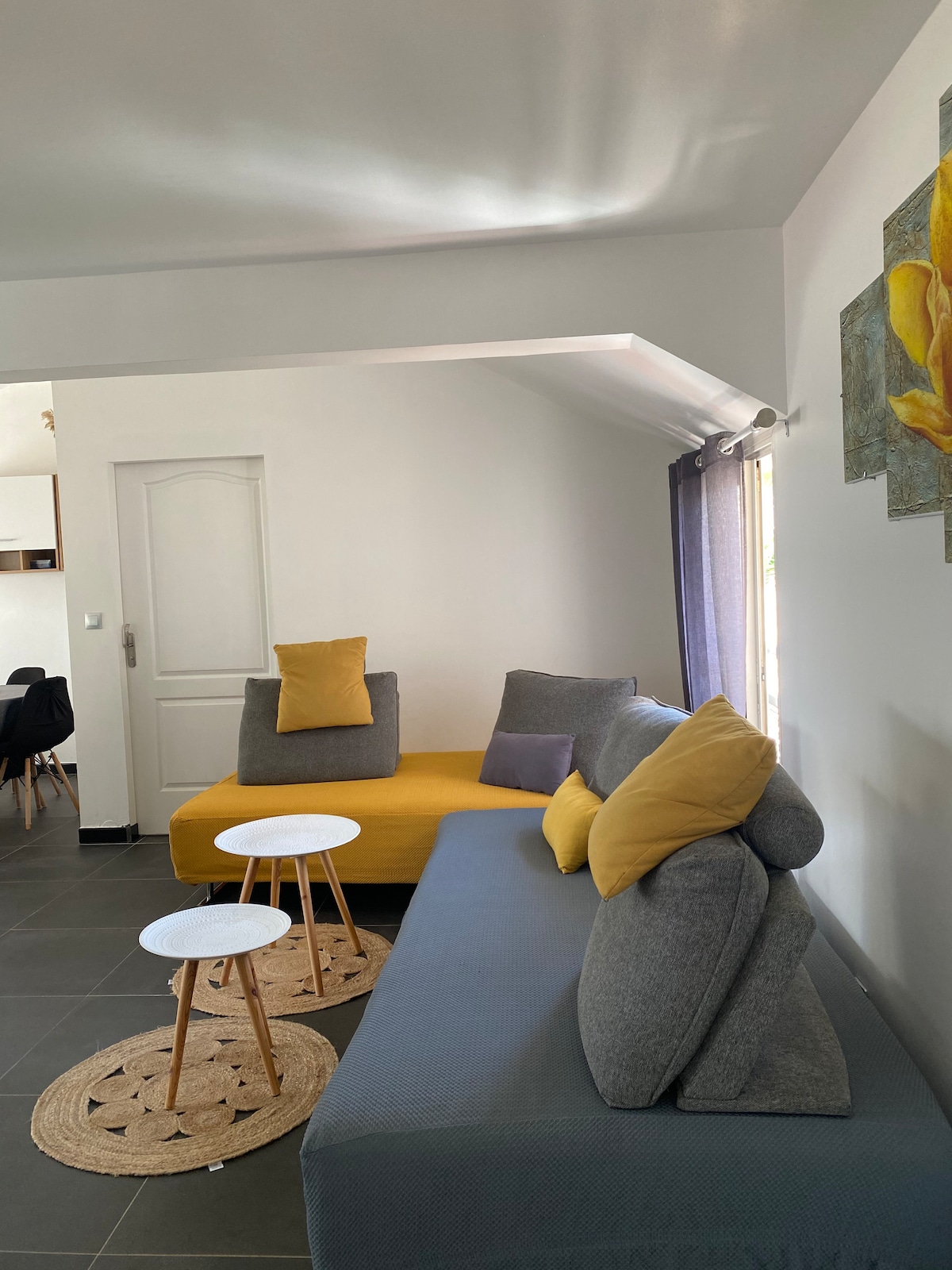 Vil·la moderna totalment equipada amb jacuzzi/minipiscina de 2,70 m x 2,70 m, 2 dormitoris amb llit de mida king de 160 x 200, incloent-hi un equipat amb aire condicionat, armari d'emmagatzematge i televisor. Bany còmode amb dutxa a peu pla i vàter modern. Sala d'estar equipada amb butaca, televisor i taula de menjador. Situada en un lloc tranquil, a 10 minuts de Saint Pierre i la platja amb jacuzzi privat només per al teu allotjament, aparcament.