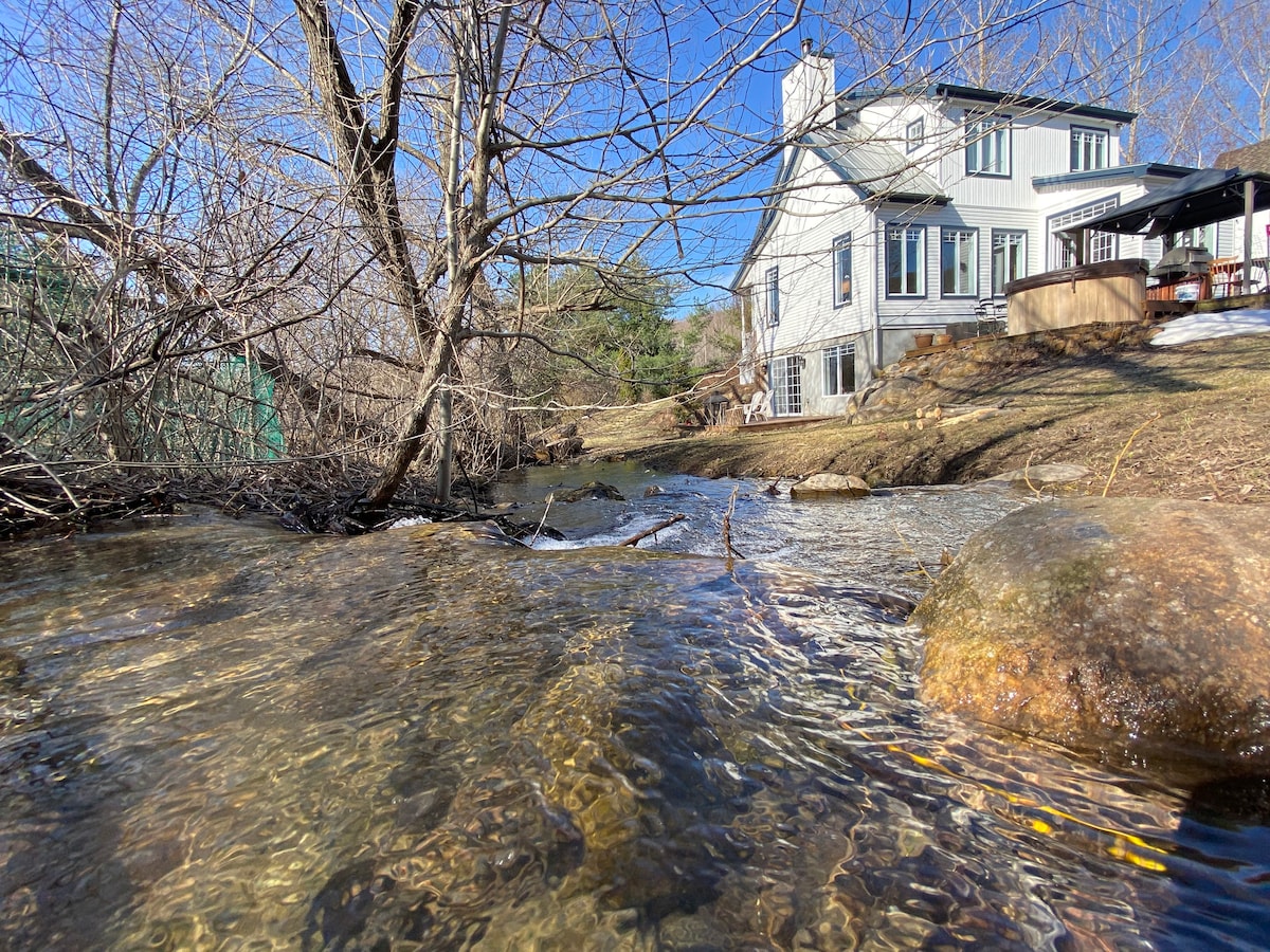 Gran casa rural rústica i càlida: costa, spa, llar de foc de llenya interior i exterior. Un lloc ideal per relaxar-se per a parelles, famílies o grups d'amics. Deixa't submergir en la natura dels laurentians i veniu a gaudir de la natació, els caiacs i les excursions. Un xalet de fusta rústic i càlid: costa, spa, llar de foc de llenya. Lloc ideal per relaxar-se en parella, amb la teva família o amics. Submergeix-te en la natura dels Laurentides i gaudeix de la natació, el caiac i el senderisme.