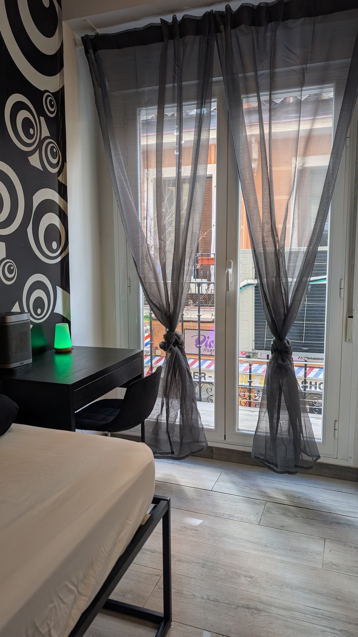 Aquest meravellós pis disposa de tres balcons que s'obren al carrer, que ofereixen molta llum natural i excel·lents característiques decoratives. Està totalment equipat amb tots els serveis que necessites Situat en un dels barris més animats de Madrid, està a poca distància a peu de la Gran Via, el carrer comercial principal i més famós de la ciutat. Situat al cor del barri bohemi de Malasaña, que es pot comparar amb Williamsburg a Nova York, està just al centre de Madrid.