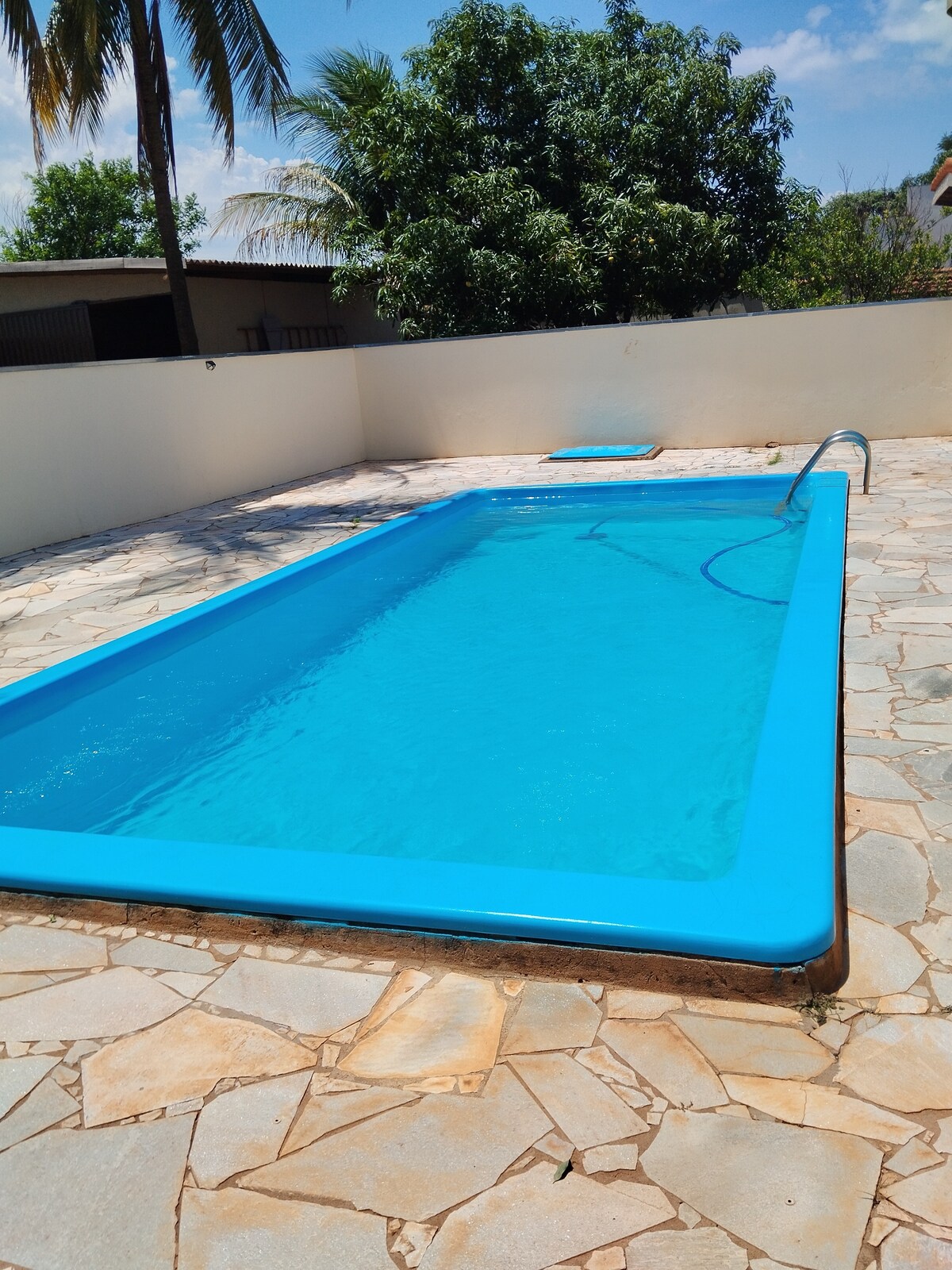 Espaço amplo, gramado extenso, terreno com 3000 m², área de lazer: piscina, quiosque com churrasqueira, bem arborizado, bem localizado, a 300 metros do centro da cidade.