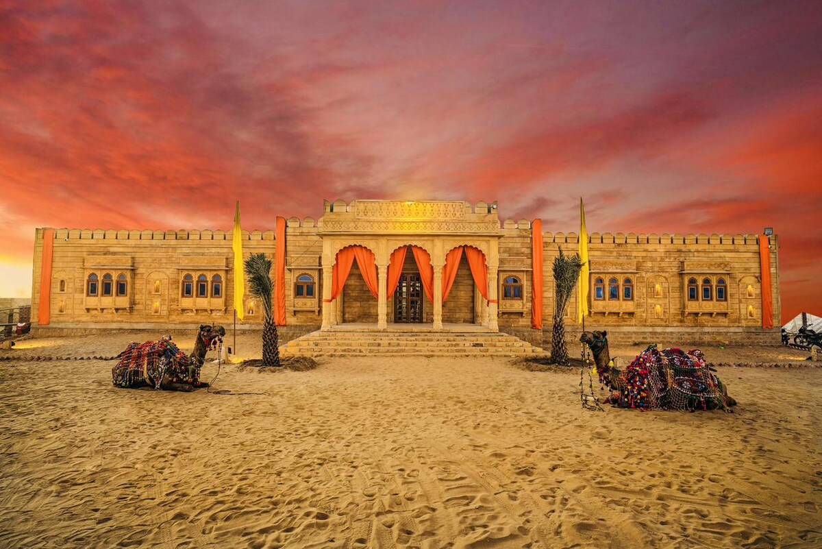 Note: ☝️ Click on “Show Original” above ⬆️ to see 👀 the correct information. ☞ This desert retreat blends Rajasthani heritage with modern luxury. Enjoy camel safaris, live folk music, cultural performances, DJ nights, and cozy bonfires under desert skies. Savor authentic Rajasthani dinners and breakfasts. Perfect for families, couples, and adventure seekers—an unforgettable journey of comfort, excitement, and cultural beauty.