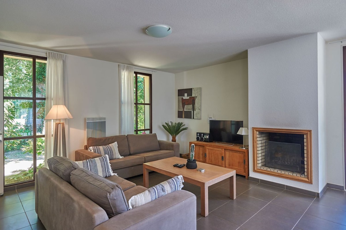 * Fantàstica parcel·la familiar, a l'ombra/tancada, amb wifi gratuïta * Xalet de 35 m2 amb aire condicionat + terrassa coberta tancada de 10 m2 (es pot obrir amb bon temps), terrassa de fusta de 22 m2 amb gandules/tumbones * Piscina amb tobogans (de maig a setembre) * Parc residencial d'oci de 4 estrelles, al cor del bosc, amb moltes activitats: tennis, Accro-Park per a nens, estadi municipal, parcs infantils, restaurant-bar i botiga de queviures… * A 15 minuts de la duna de Pilat, la conca d'Arcachon, Aqualand, el zoo, les platges oceàniques...
