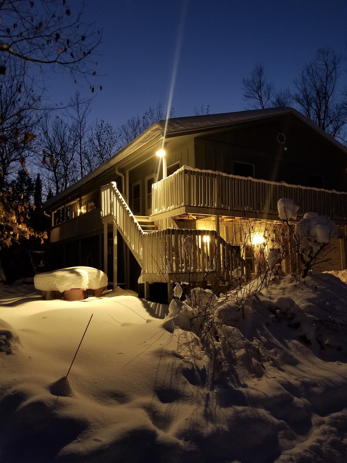 One of a kind, open/loft-concept (see pics: it really is open) artisan-crafted lake home on Superior's south shore: paddle in summer/ice hike in winter. Breathtaking sunsets. 300+ feet of private shoreline or short walk to public beach. Great kitchen. Up to 8 people and most dogs welcome - PET FEE: pets are an extra $25 (there is a place to leave this next to the house manual on the kitchen counter) Scenic huge patio with built-in fire pit (BYO firewood) We hope you love it as much as we do!