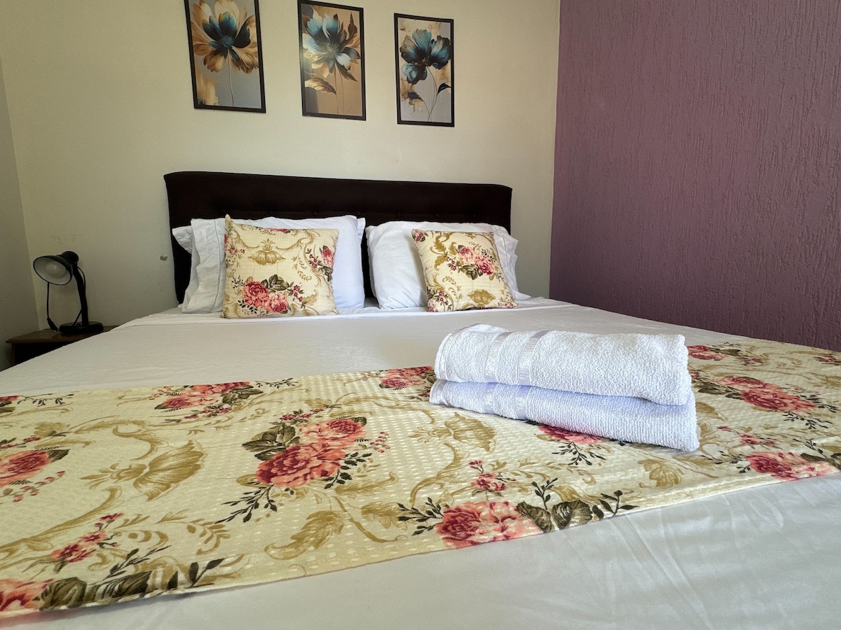 Relaxe com toda a família nesta acomodação tranquila. Para sua comodidade temos: Wi-Fi e Garagem para até 3 carros; Na cozinha disponibilizamos: fogão a gás, microondas, air fryer e utensilios para café e outros. Para seu conforto e de sua familia, disponibilizamos: Chuveiro Elétrico, Televisão, frigobar e 2 ventiladores de coluna, etc.