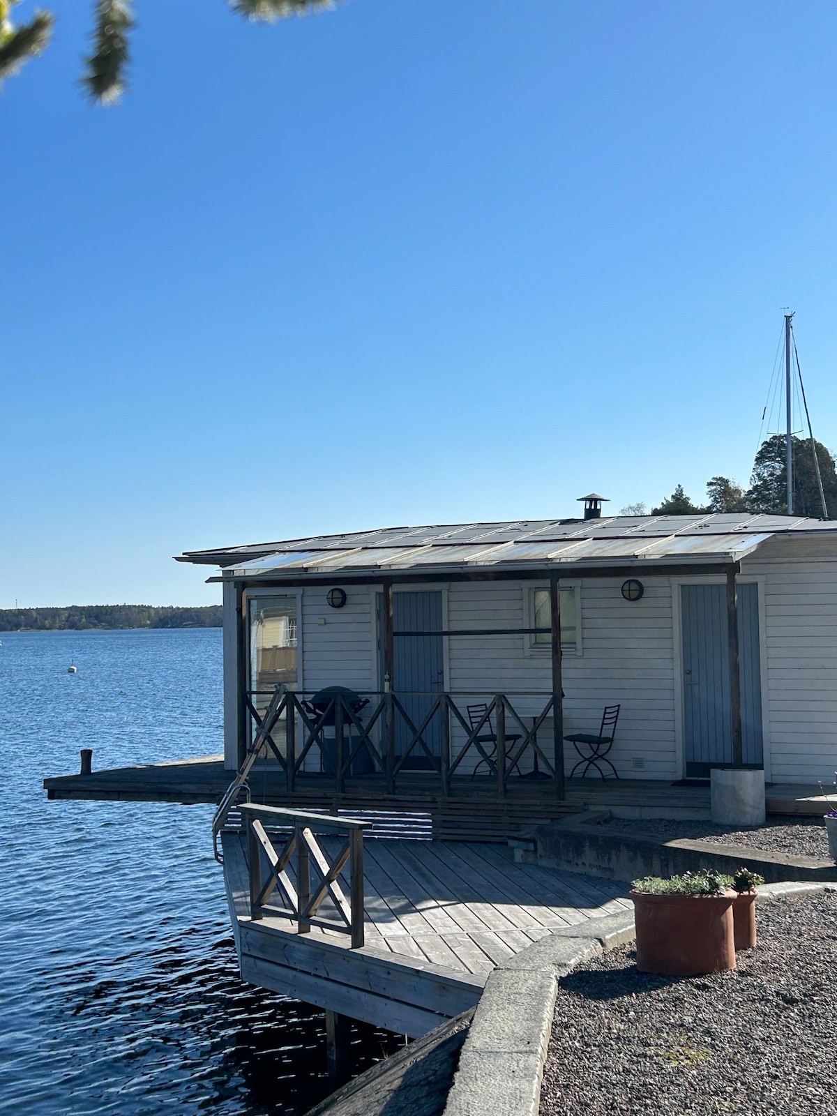 Gaudeix de una casa flotant de 50 m2 amb la seva pròpia sauna i vistes panoràmiques de l'aigua. Neda directament des del dormitori. Tindràs una experiència inoblidable a causa de les vistes, la bonica ubicació, el jardí i el moll amb la terrassa. El nostre vaixell és adequat per a parelles a qui els agrada sorprendre o celebrar la seva parella, aventurers que volen acostar-se a la natura i encara estar a prop d'Estocolm. Una canoa està disponible a l'estiu. També oferim un spa addicional i una sauna amb calefacció de fusta a la nit.