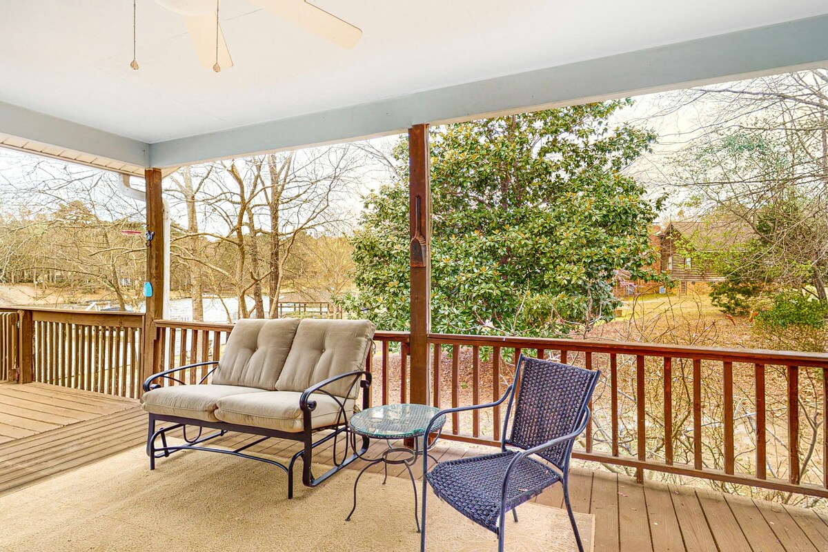 Message “DI$CO” for current discounts on this peaceful & private home on a Lake Murray bluff with stunning views, full kitchen, 2 full baths & plenty of room for the whole family. Porch & patio take full advantage of the horizon & sunsets. The interior has a wide-open log cabin design centering the family around a stunning stone fireplace & 50” HDTV. No direct lake access, nearby boat ramp & docks 1.5 miles away. ~30m to Lexington/Chapin ~45m to CAE airport ~1hr to Augusta & Columbia (FJ & USC)