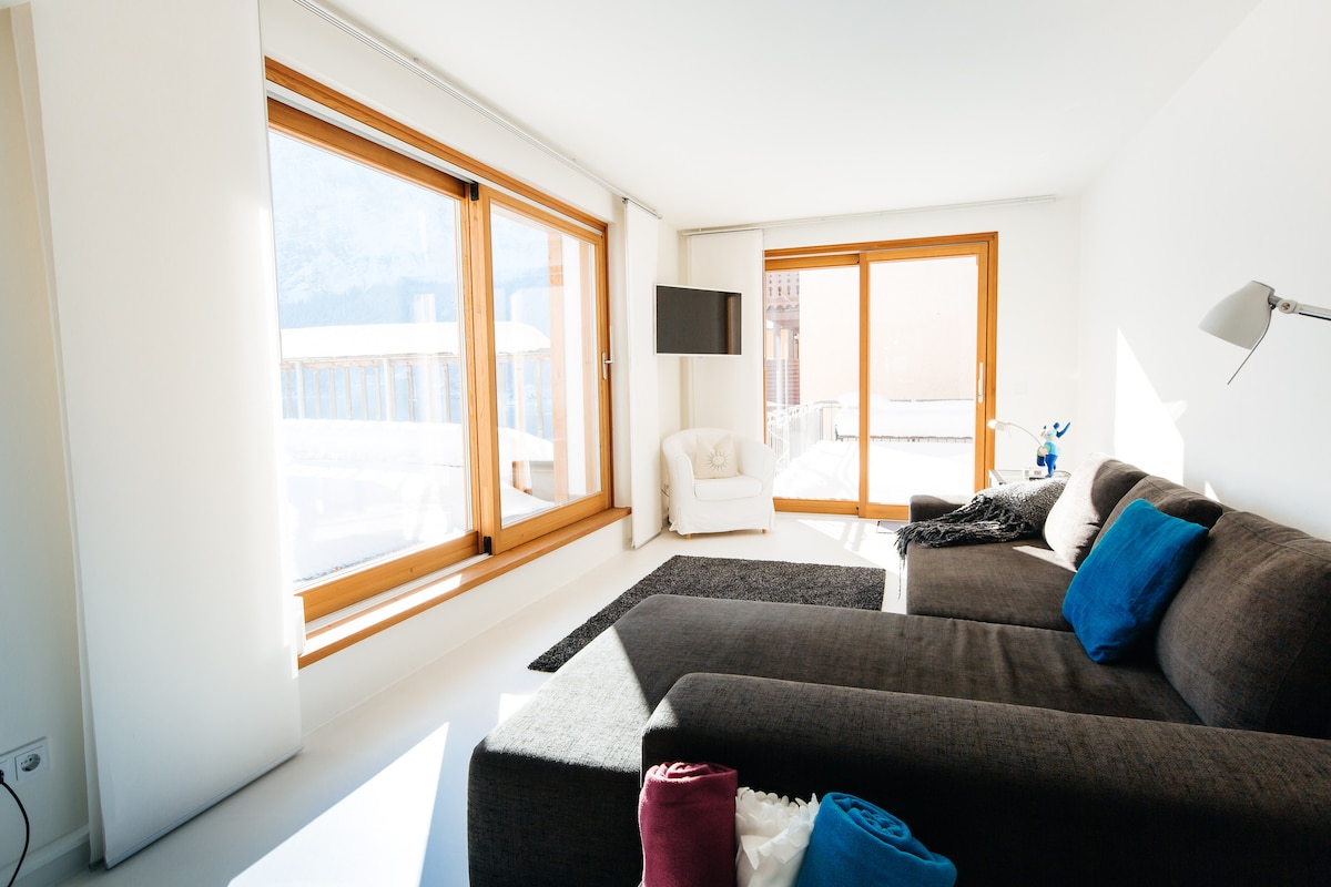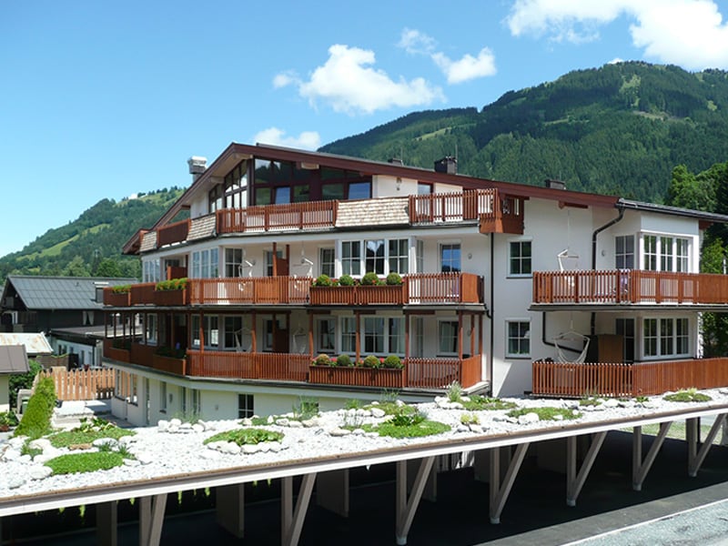 Das Apart Parterre ist 65m² groß und ist für zwei bis vier Personen geeignet. Es besteht aus zwei Schlafzimmern mit jeweils einem Doppelbett, einem 10m² großem Design-Badezimmer, einem extra WC, einem schickem Wohnraum mit großzügiger Einbauküche, einem Kamin mit Sichtfenster nach innen und außen, einem 20m² großen Balkon mit Private-Outdoor-Sauna. Die Waschmaschine und der Trockner befinden sich im gemeinsamen Ski- und Fahrradraum. Der Parkplatz ist fix zugewiesen.