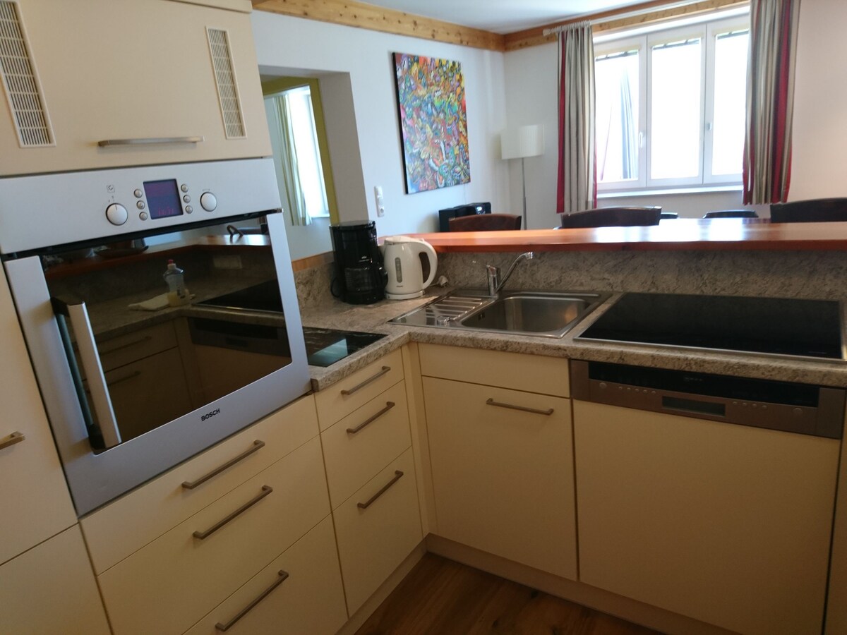 El teu loft amb vistes al llac i a la muntanya. Un pis lluminós (85 m2) amb estudi. Equipat amb terres de parquet, gran cuina-sala d'estar, 2 dormitoris espaiosos, bany amb banyera, 2 jardins d'hivern, així com 2 places d'aparcament i 2 places d'aparcament. Totes les habitacions amb calefacció i wifi. Gran pati per fer graella (barbacoa) i prendre el sol. Des del conservatori es pot gaudir d'una vista meravellosa de Mondsee i Dragon Wall. T'esperen nombroses destinacions d'excursió a la zona. La ciutat cultural de Salzburg està a només 30 minuts