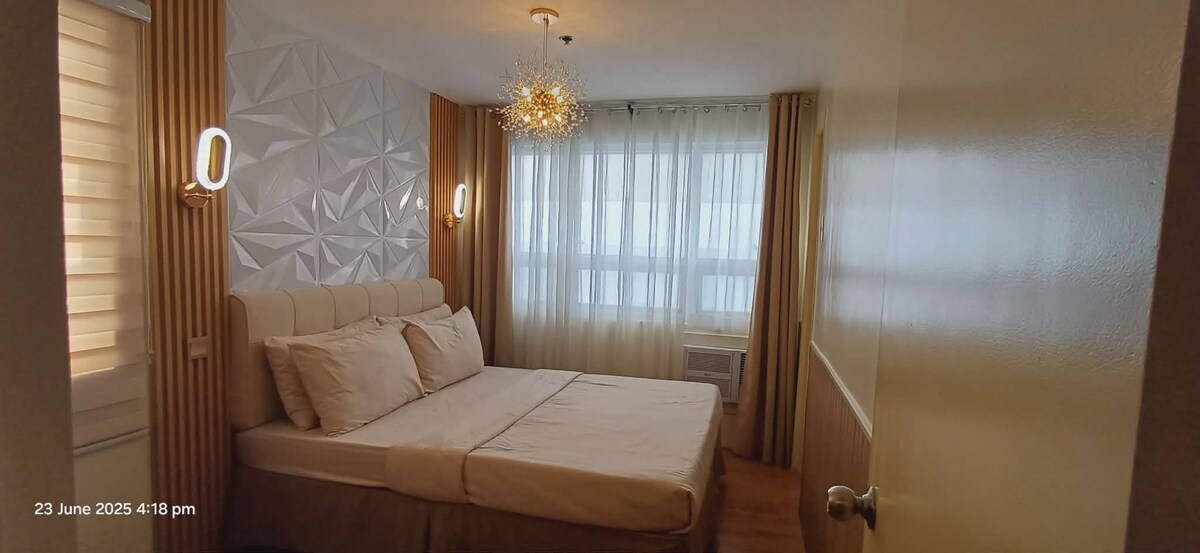 Gaudeix d'una experiència elegant en aquest allotjament cèntric. Amb una vista d'un milió de dòlars, però assequible. A només 3 minuts en cotxe de SM City. A prop de S&R, PWC, mts, Ateneo, a 3,5 km de la Universitat Ateneo Roxas (mercat nocturn), a 4 km d'abreeza, centre comercial Gaisano. Pis de 2 habitacions totalment moblat - Es manté i higienitza periòdicament. - Es pot cuinar amb cuina completa. - amb dutxa freda/calenta. - internet de fibra d'unli -NETFLIX/youtube - Aigua potable gratuïta - Kit gratuït per a convidats (quantitats destinades únicament a un ús estàndard)