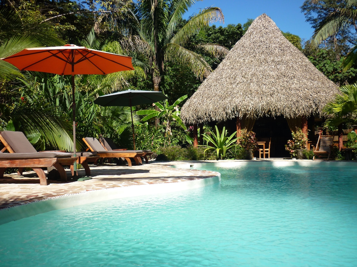 Petit complex turístic a la selva d'Esterones, a prop de Samara, amb vistes al mar i a les muntanyes. Pots caminar fins a la platja natural Playa Buena Vista en 20 minuts! En cotxe 5 min. Una de les platges més boniques de Costa Rica Playa Barrigona està a només 5-6 minuts en cotxe. Els bungalous són per a màxim. 2 adults i un nen. Excursions com ara excursions en caiac, visites amb dofins i tortugues, excursions de pesca, excursions de pesca , excursions a peu, passejades a cavall , classes de surf i molt més.