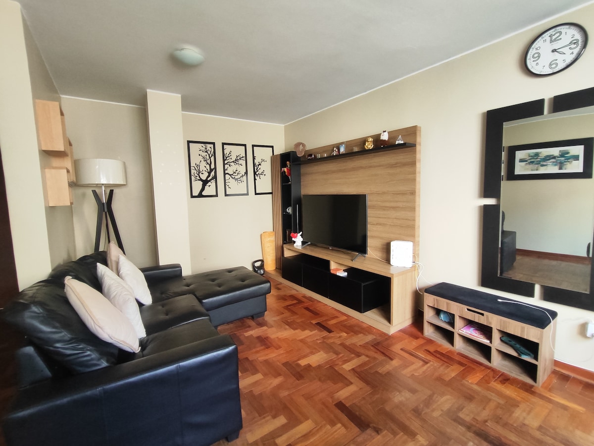 Pis modern d'estrena situat estratègicament al cor de San Borja. Pis acollidor, ideal per a 2 persones, situat a 50 metres de l'estació de tren de San Borja Sur. Està situat a la 5a planta amb ascensor, té una habitació, cuina equipada, safareig, sala d'estar, bany complet i wifi. Zona tranquil·la, amb una àmplia oferta gastronòmica a pocs metres, botigues i comerços.
