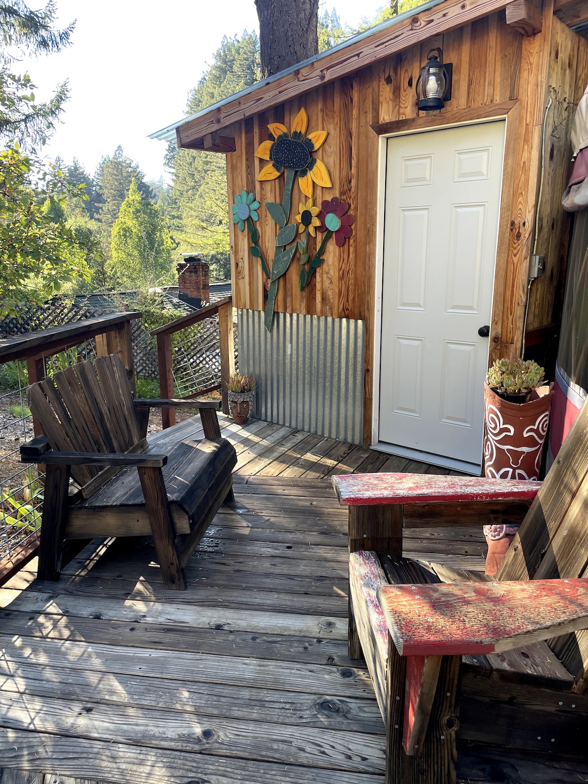 Sobre la iurta: Ubicada a la preciosa vall del riu Rus al comtat de Sonoma, la nostra iurta especial i única ofereix tot el que necessites per a una escapada tranquil·la o romàntica. La iurta del riu Rus és espaiosa (20x20), privat i té una gran terrassa de sequoies, perfecta per prendre un cafè al matí o contemplar les estrelles a la nit. És equipat amb un llit còmode, televisor de pantalla gran i cuina i un bany complet amb dutxa.