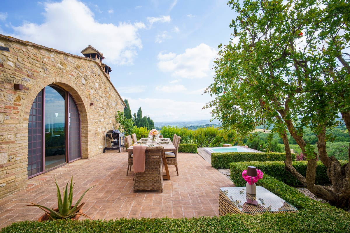 La casa forma part d'una encantadora masia tradicional toscana, construïda en pedra i situada en una de les zones més boniques de Toscana.Un bonic jardí envolta la casa i té magnífiques vistes de la ciutat medieval amb les seves famoses torres.