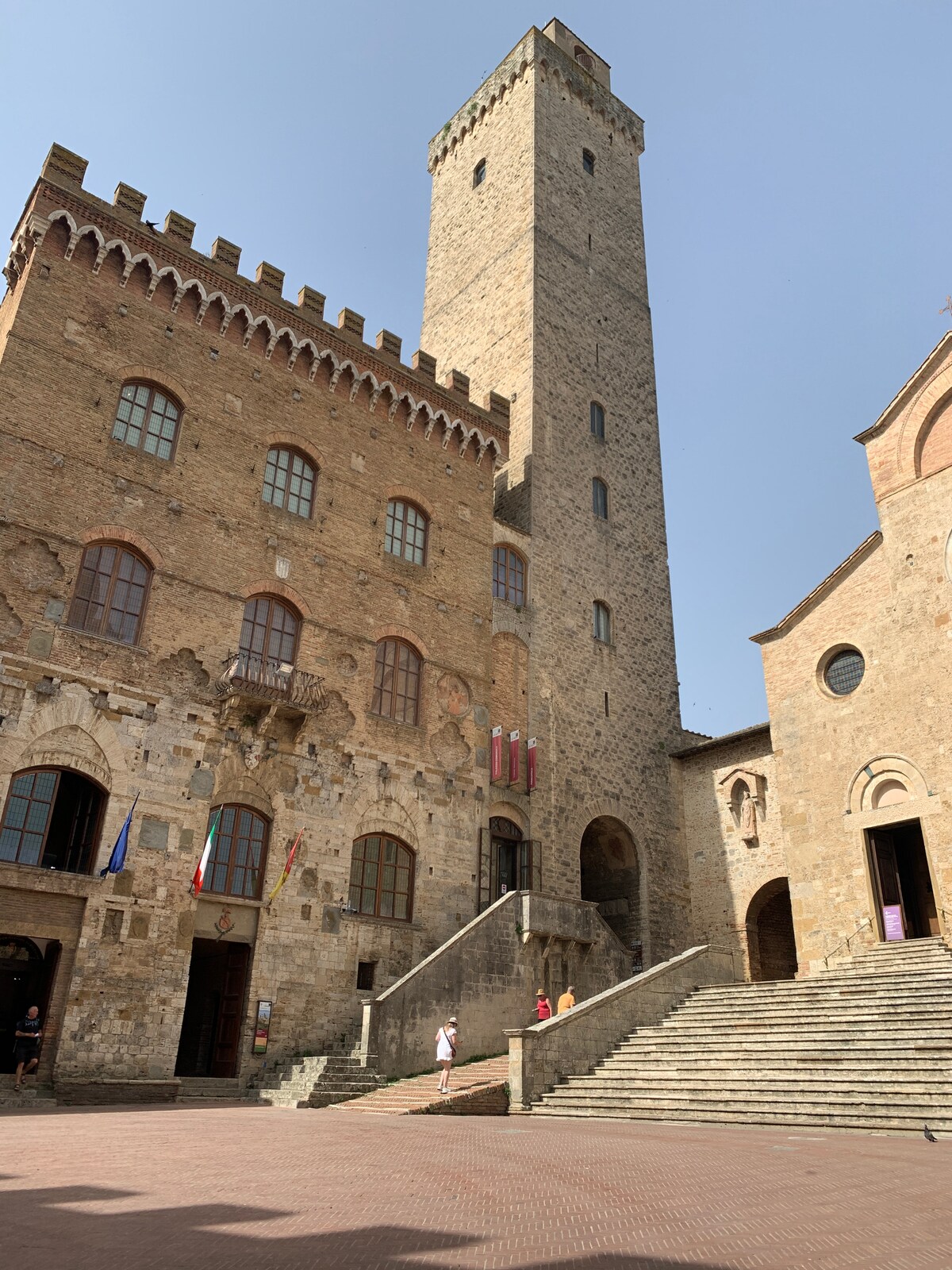 Un entorn refinat i molt cèntric, entre la Piazza della Cisterna i la Piazza del Duomo. La casa té el valor singular de combinar una planta baixa còmoda, amb entrada independent, amb una vista impressionant de la famosa torre del Diable. El jardí exclusiu, equipat per menjar a l'aire lliure, llegir o romandre entre flors i torres, és un oasi extraordinari de pau i silenci, just a la cantonada de les dues animades places principals. Possibilitat d'aparcar en una plaça privada per un cost de 9,00 € al dia.