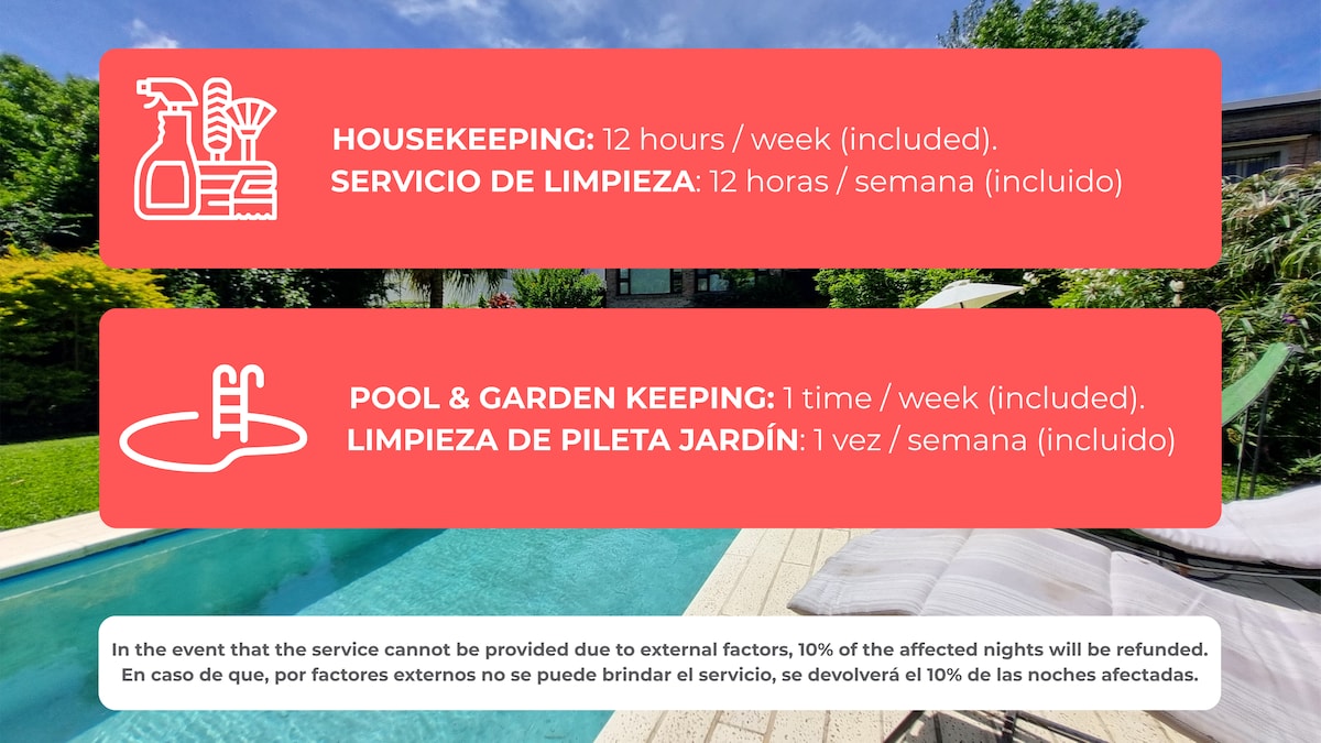 Casa con pileta y servicios de limpieza y cocina
