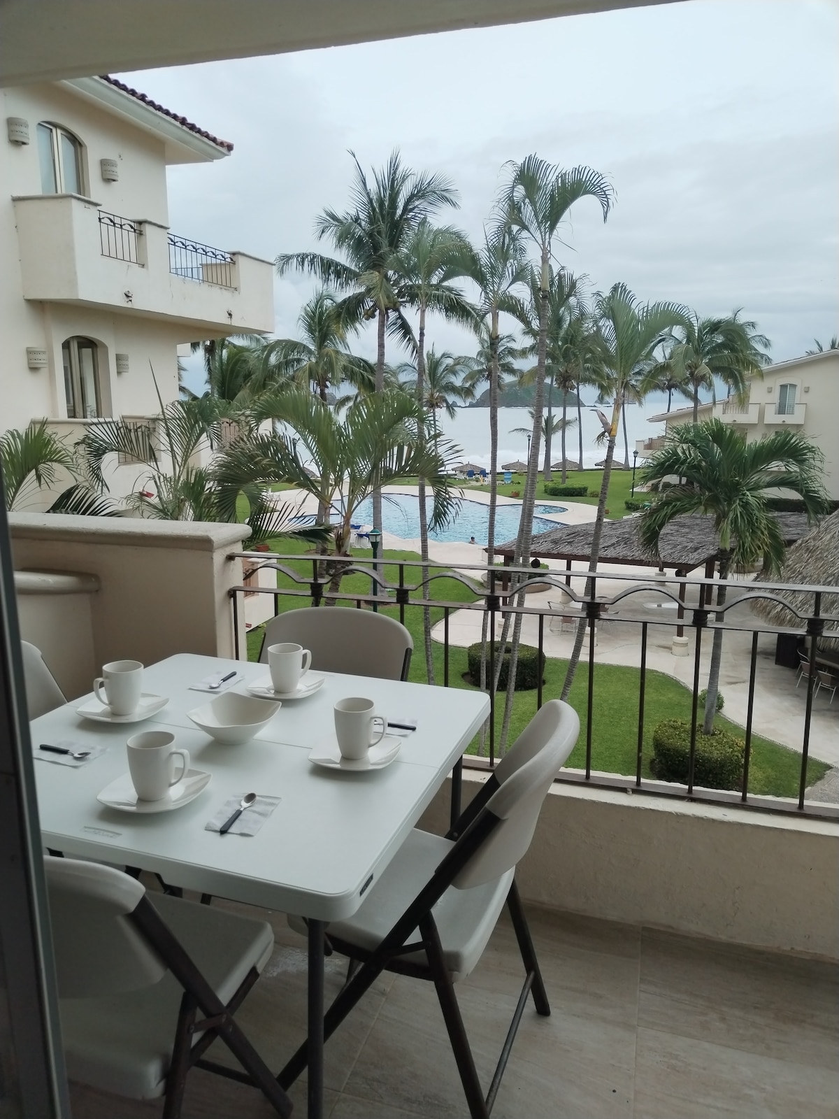Una escapada encantadora i a primera línia de platja d'on es pot relaxar-se, menjar i dormir còmodament, quan no gaudeixis de la magnífica platja i la piscina i tot el que Ixtapa té per oferir. L'apartament es troba al sisè pis i té una espectacular finestra de paret a paret a la sala d'estar que s'obre a la muntanya fantàstica, al camp de golf i a la sortida del sol. Les portes corredisses del pati condueixen a fabuloses vistes al mar i a la muntanya amb postes de sol increïbles sobre l'oceà Pacífic.