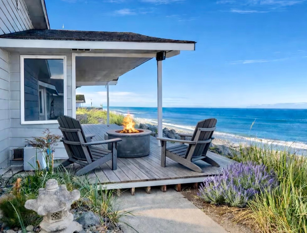 Coastal-chic and modern, this newly furnished waterfront home offers sweeping sunset views and space for 8. Enjoy vaulted ceilings, curated décor, an open living area, and an expansive deck overlooking the sound. A private downstairs MIL suite—complete with its own kitchen and living room—adds comfort and flexibility. Cozy fireplaces, serene bedrooms, and upscale finishes make this the perfect Whidbey Island retreat.