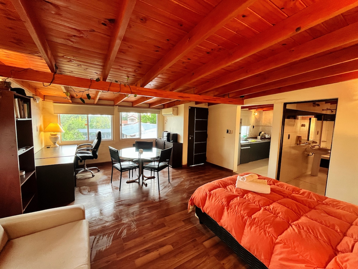 Excelente ubicación en el centro de San Luis. Luminoso depto-casa para 2-4 personas. Amplia cocina y cómodo living-comedor. Un dormitorio con cama doble, TV, aire acondicionado y gran placard. Cama marinera para 2 personas en el living. Wi-Fi. Calefacción y ventilador. Cochera techada para un auto chico o mediano (4,50m largo y 2,10m ancho). Jardín al frente y pequeño patio al fondo. A 2 minutos de la Ruta 7 (BsAs-Mendoza) A 20 minutos de las sierras de Potrero de los Funes