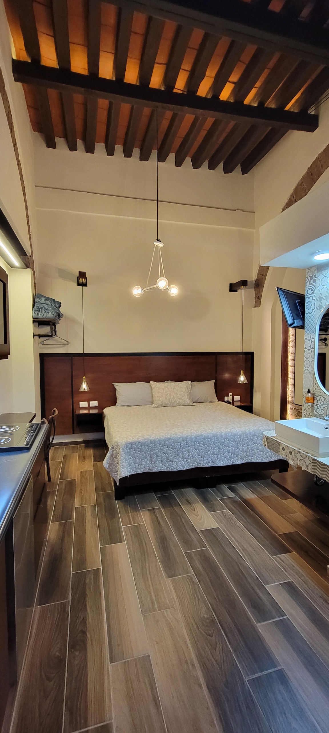Casa situada en una de las avenidas principales del Centro Histórico, a unos pasos del Jardín de San Sebastián y todos los lugares turísticos del centro. Acogedora habitación cuenta con una cama King Size, un sofá cama, baño privado, vestidor, Smart tv, Alexa, refrigerador, microondas, cafetera. La habitación está en el segundo piso dentro de la casa, se puede acceder a la terraza, no está permitido utilizar la cocina del primer piso.