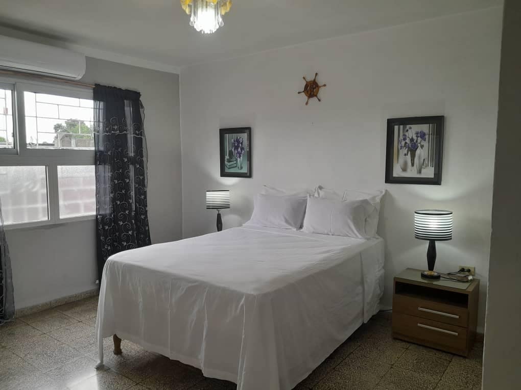 Gaudeix de la senzillesa d'aquest allotjament tranquil i cèntric, que compta amb un llit doble a cadascuna de les seves dues habitacions. Situat en un tercer pis i totalment privat. A pocs minuts del centre a peu (a 10 minuts del parc Calixto Garcia i Bodeguita del Medio). Amb vistes a la Loma de la Cruz des del balcó. Gran varietat de Paladares/restaurants propers a poca distància a peu.