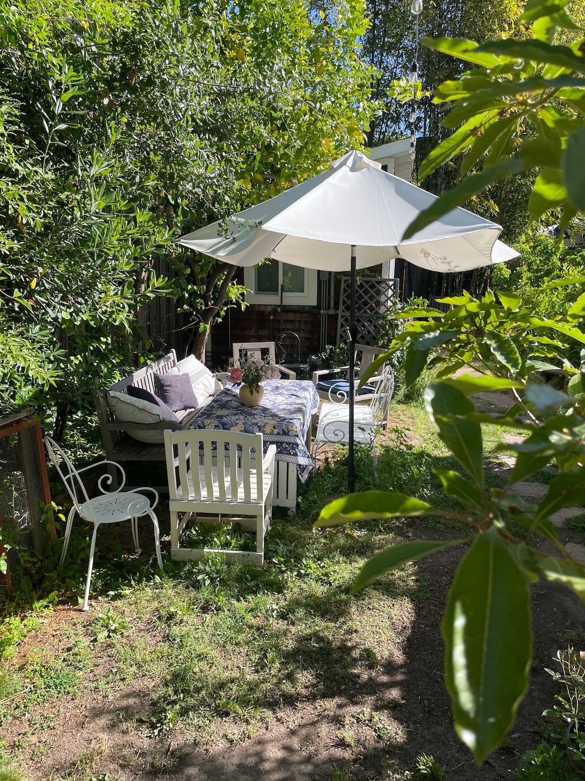 Recentment pintada, la nostra tranquil·la, segura, molt neta i pintoresca caseta d'hostes d'estil mediterrani està situada en un pati ajardinat sota una sequoia i només és adequada per a 1 hoste. Pots caminar còmodament fins als cafès del barri de Midtown, als grans restaurants i als mercats. Accedeix ràpidament al campus de Stanford, a les empreses de Silicon Valley, a les zones comercials de San Antonio i a l'estació de Caltrain de California Ave amb cotxe. Pots gaudir del nostre pati, fer una migdiada a l'hamaç o treballar al pati amb accés a la wifi.