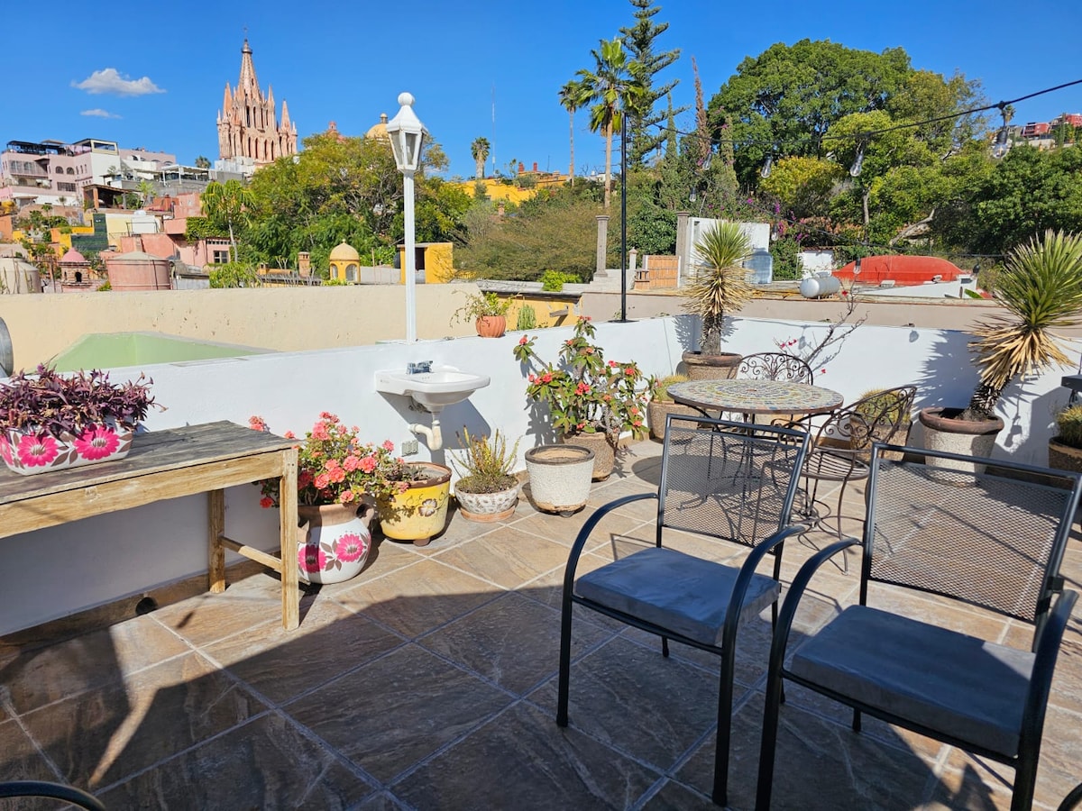 !!!!!!! ESCRIU EL NÚMERO D'HOSTES. -PRICING PER PERSONA.! !!!!!!! Situat just al cor de San Miguel de Allende. La Casa Las Danzantes és una excepcional residència privada de 4 dormitoris amb cuina completa, una bonica entrada a la planta principal amb pati i piscina on pots gaudir i una increïble terrassa amb una vista espectacular de la parroquia i els terrats del centre. El millor lloc per relaxar-se, gaudir i viure una mica de vida mexicana. A 2 minuts a peu de la plaça central.